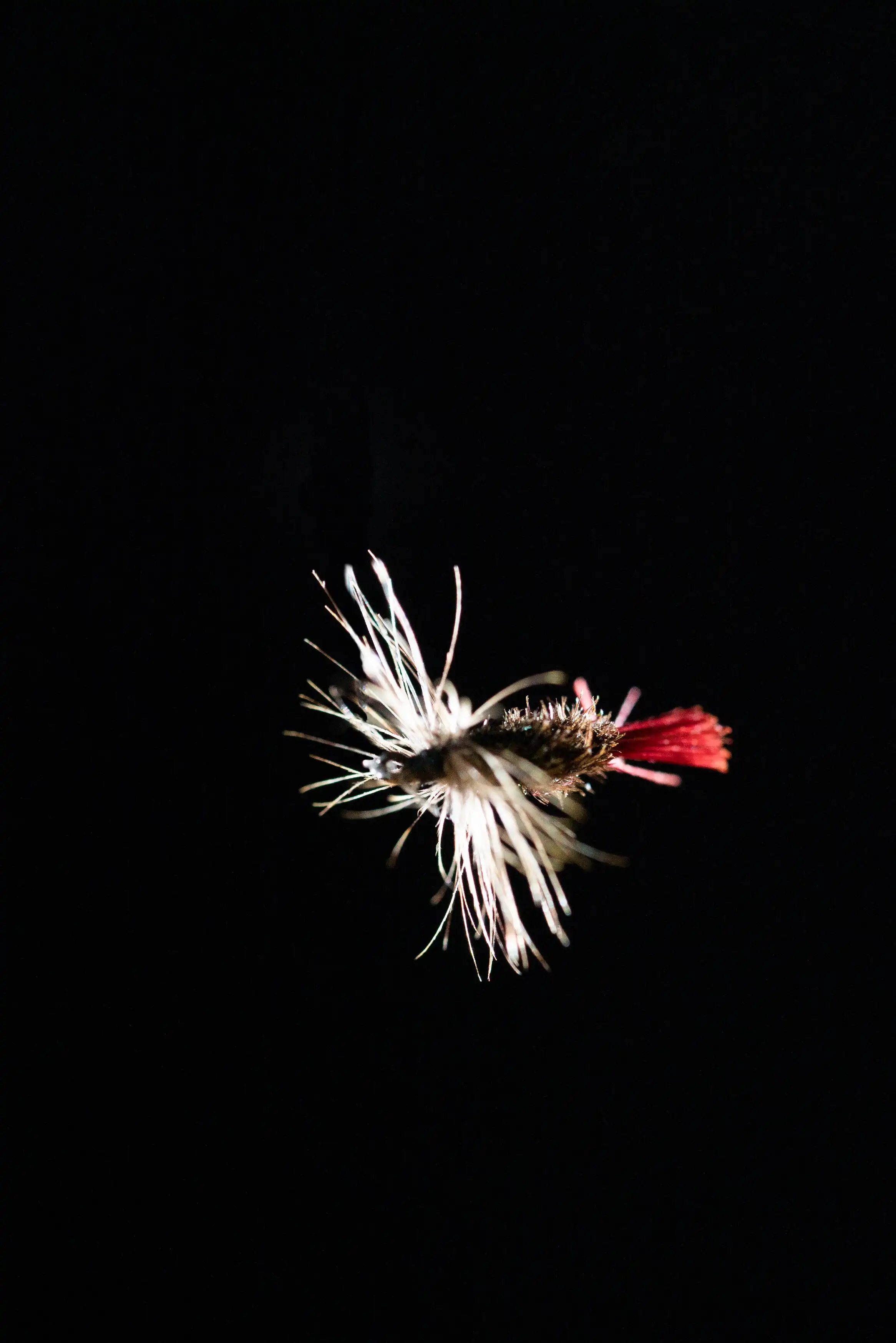 These bait objects were handmade by my grandfather and used for fly fishing. The macro photographs stage the flies as living insects, with many details. The objects, imitate real species of flies, but are not themselves intended as display objects. By photographing the individual objects, a form of conservation takes place in the sense of a caretaking for a memory object, which through the exhibition yet stands as a deceptive object in a context of a human relationship with the natural world.